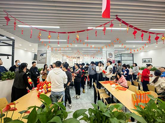 2月1日下午,在农历龙年即将到来之际,工会组织“迎春送福”联欢活动。来自各个部门的员工齐聚一堂,写“福”字,猜灯谜,开开心心过大年。